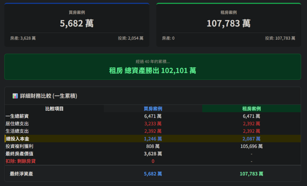 - 家庭策略: 對於雙薪家庭而言,租房投資帶來的複利效應更為驚人,最高可拉開數億元的資產紅利。